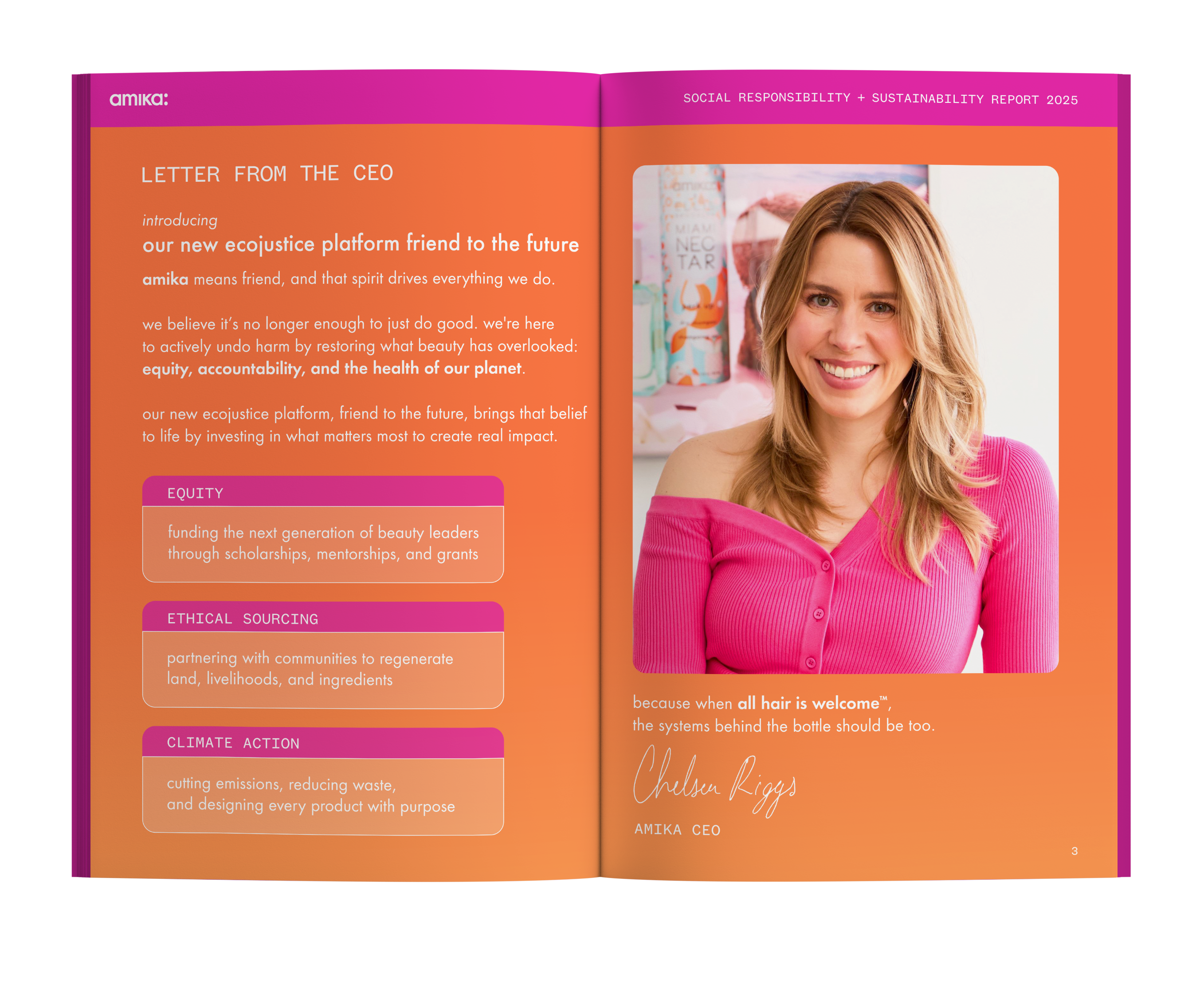 Created sustainability report highlighting Amika’s goals and achievements of that year.